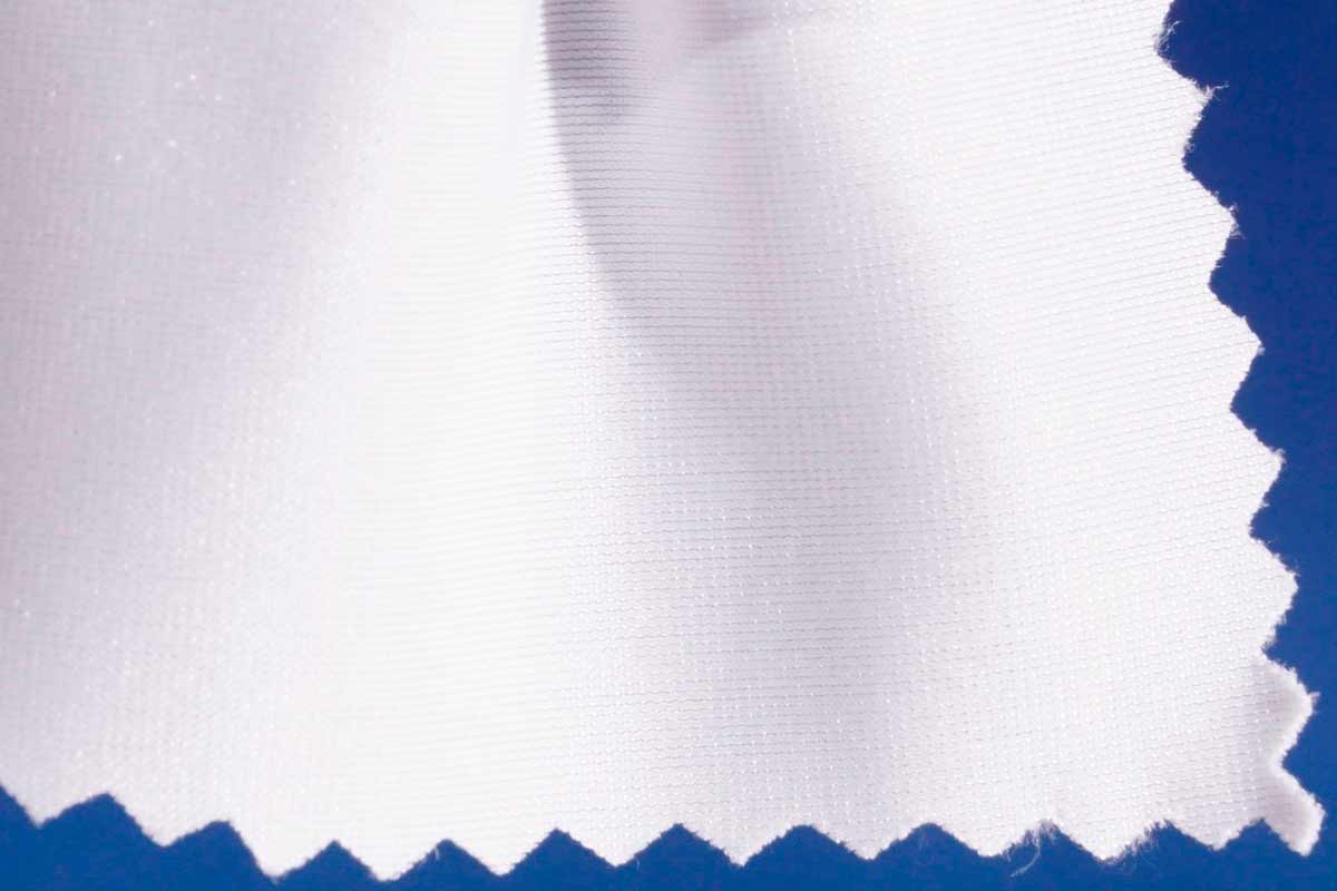 Эта ткань сильно растягивается в длину, примерно на 30%, и умеренно в ширину, примерно на 15%. Отлично зарекомендовала себя в одежде для самых разнообразных видов спорта. Нисколько не стесняет движений и не обвисает, если намокнет. Наилучшее решение для стартовых номеров-маек.